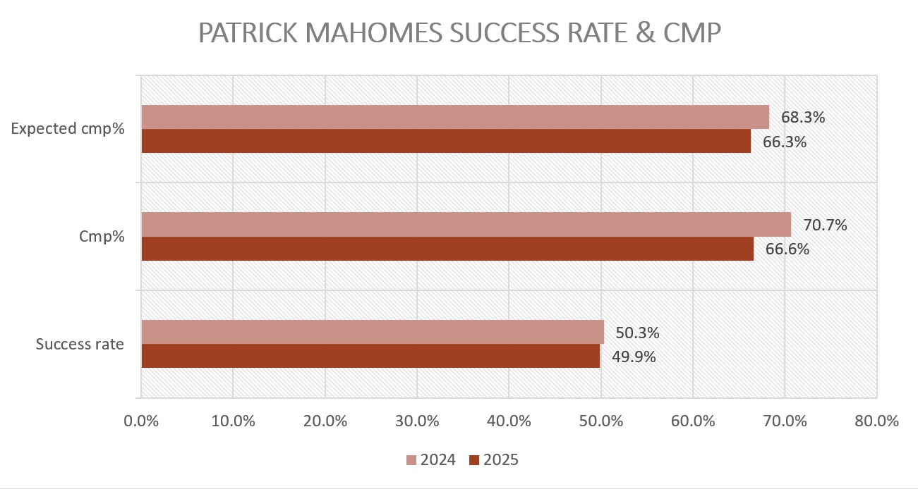 Ποσοστό completion και success rate του Mahomes (2024-2025)